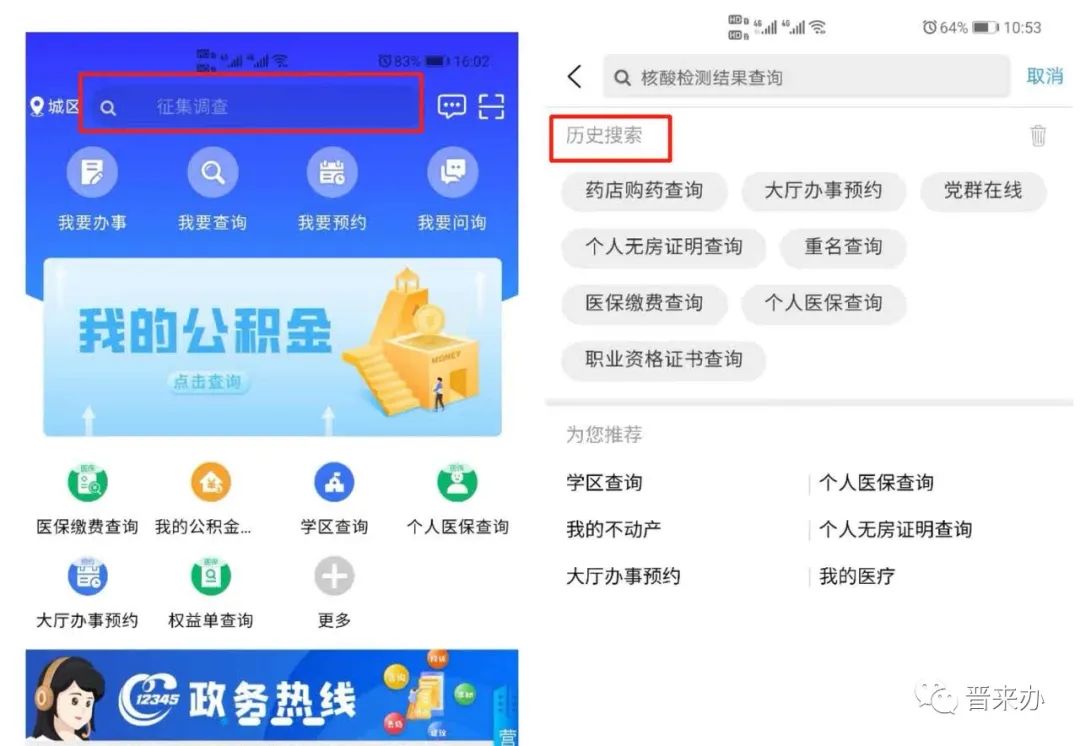 “晋来办”的首页上设置了搜索入口。只要输入服务名称,各类服务一键直达。能搜什么?目前支持搜索已上线的各类服务及资讯内容,搜索主页还会记录你近期搜索历史,下次不用再输入。