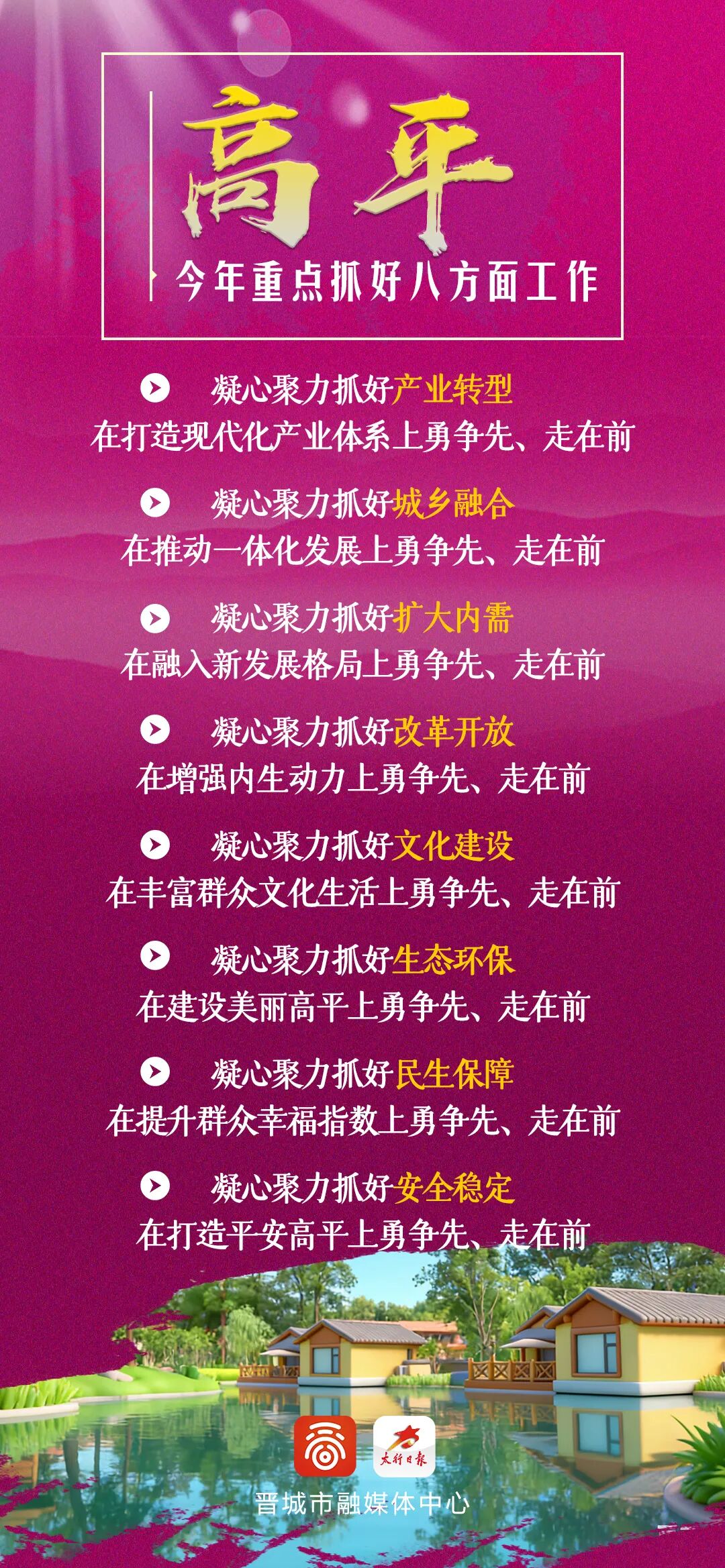 蓝图已经绘就,实干正当其时!刚刚闭幕的2026晋城两会,紧扣“十五五”规划开局这个战略节点,明确了今年重点抓好的八方面工作,为全市高质量发展,锚定总航向、擘画总蓝图。