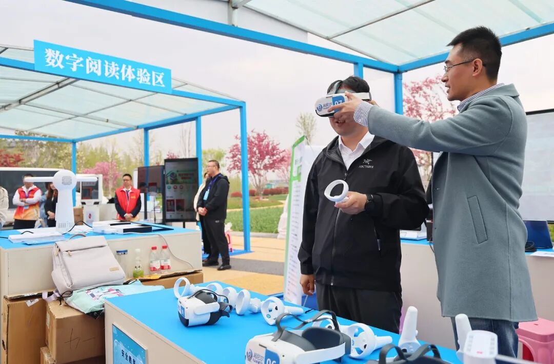 在数字阅读体验区,北京润尼尔软件科技有限公司的展位前排起了长队,工作人员正指导孩子们佩戴VR眼镜,体验沉浸式阅读。“孩子们戴上VR眼镜,能进入理化生实验室做实验,能钻进血管看DNA,还能走进太阳系感知天体距离,甚至能置身‘床前明月光’的古诗词场景里。”公司产品经理赵永钢一边调试设备一边介绍,“希望通过科技让孩子们更好地理解阅读内容,真正爱上阅读。”戴着VR眼镜的小朋友们脸上满是惊奇,不时发出欢呼,科技与阅读的碰撞,让书香有了更鲜活的表达。