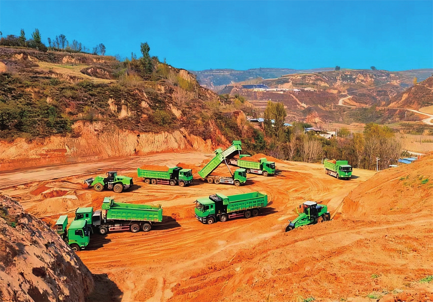 一辆辆新能源车穿行于省道247线项目建设现场。杨金锁摄