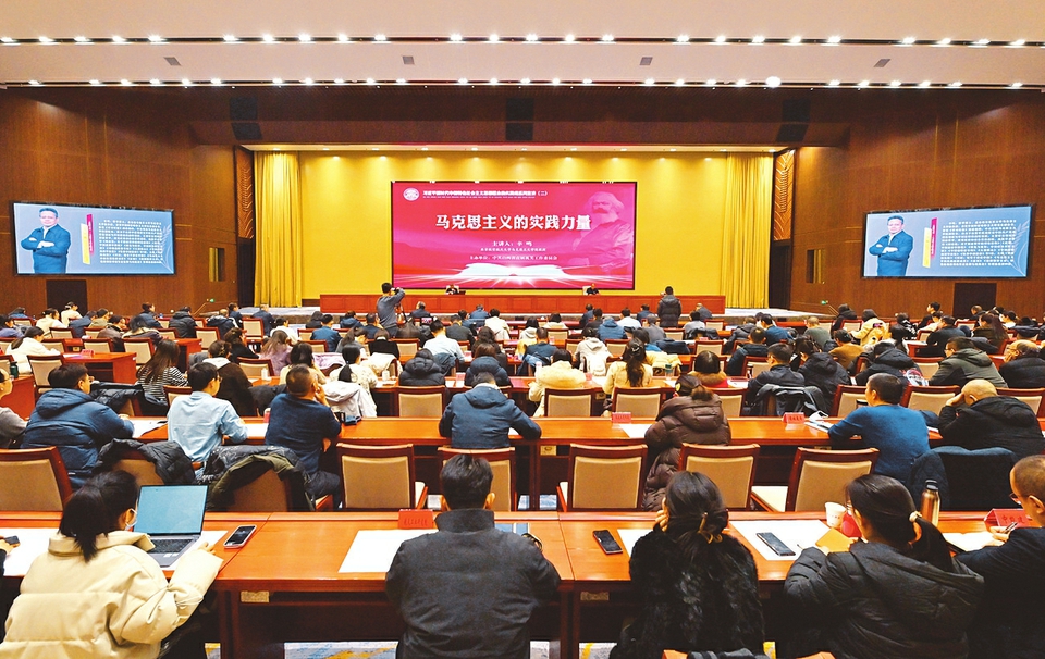 报告从马克思主义的实践品格、中国化时代化马克思主义的实践伟力、勇于推进实践基础上的理论创新三个层面,系统解读了马克思主义哲学所蕴含的实践观点,透彻分析了马克思主义中国化三次历史性飞跃的现实意义,深刻阐释了“实践是理论之源”的内在逻辑和时代价值。现场聆听的党员干部纷纷表示,报告内涵深刻、语言生动、深入浅出,既有理论的高度,又有实践的深度,还有思考的广度,为党员干部系统掌握和科学运用马克思主义基本原理,深入学习贯彻习近平新时代中国特色社会主义思想奠定了深厚的理论基础。