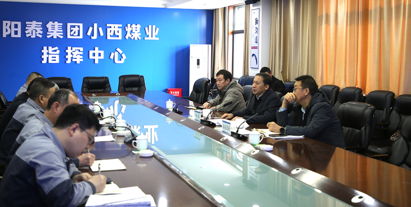 在阳泰集团小西煤业调度指挥中心,牛琛通过实时监控系统细致查看井下生产作业、瓦斯监测、人员定位等实时数据,详细询问值班值守、隐患排查、应急处置等情况。