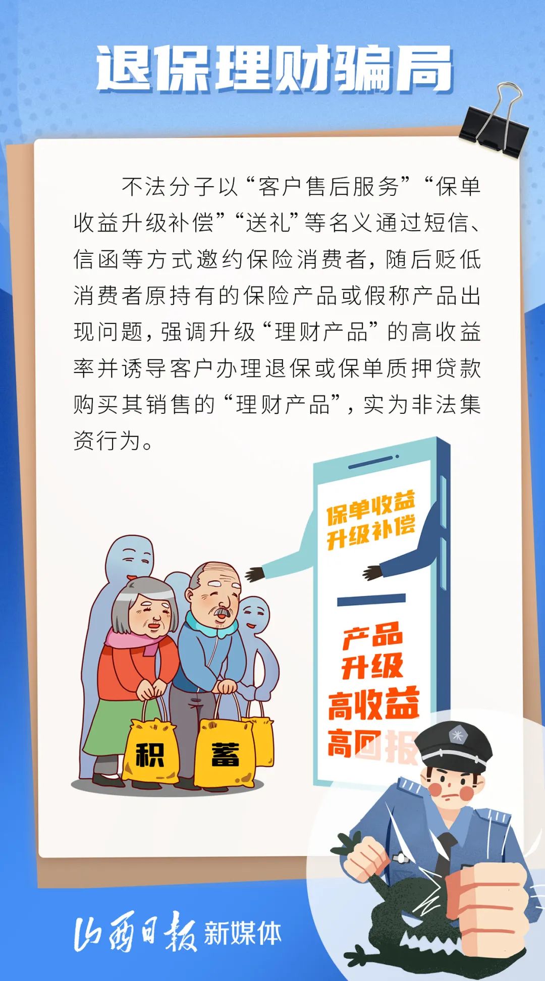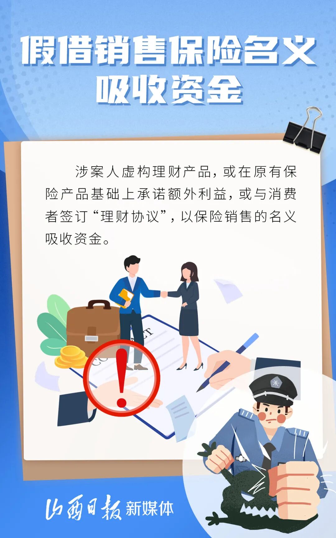 伴随保险业的快速发展,保险欺诈也夹杂其间、不断翻新花样。近年来,保险类非法集资案件频频曝光,我们要加强对保险类非法集资的认知和防范意识,警惕以下6种保险类非法集资套路。