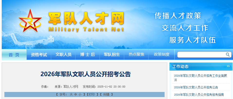 重要提醒!为广泛延揽社会优秀人才服务军队建设,中央军委政治工作部近日部署展开2026年军队文职人员公开招考工作。