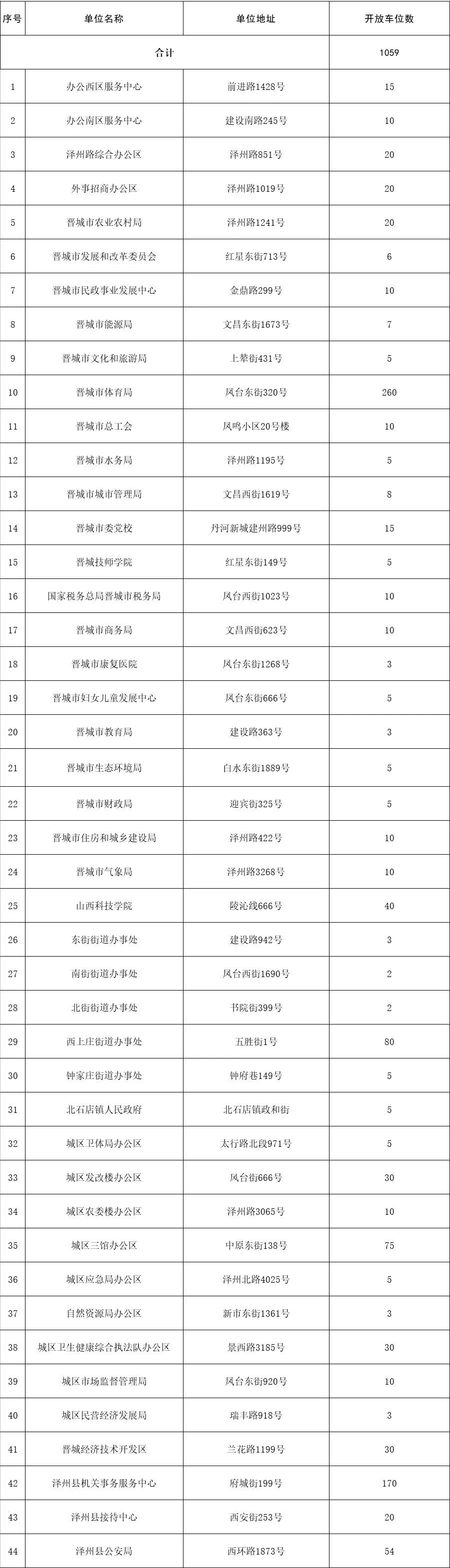 截至目前,44家单位已完成停车位信息登记,共提供1059个错时免费停车位。