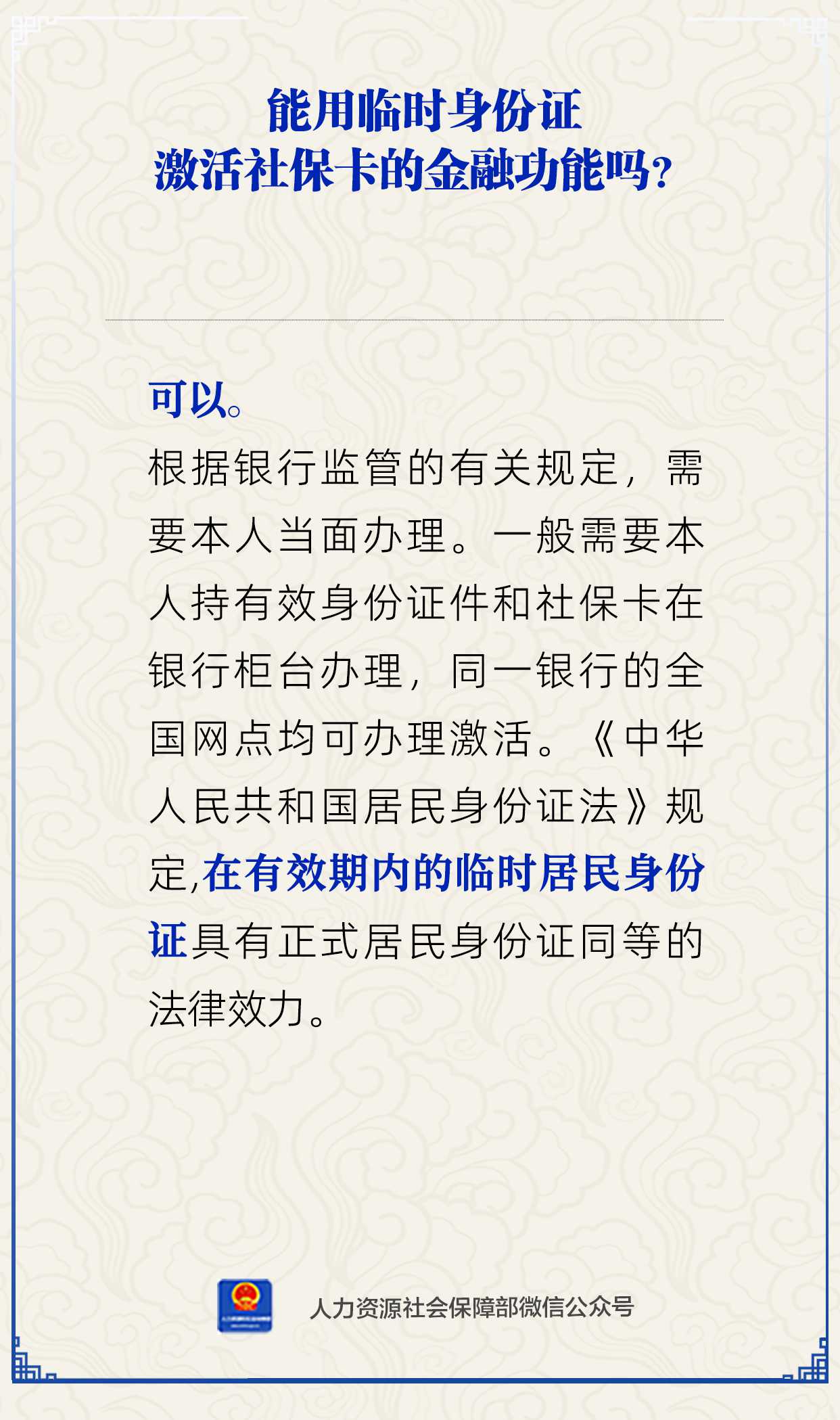 能用临时身份证激活社保卡的金融功能吗?