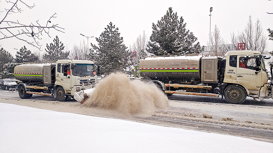 晋城经济技术开发区组织专业车辆对辖区道路进行除雪作业。 记者 王戈野 王逸云 摄