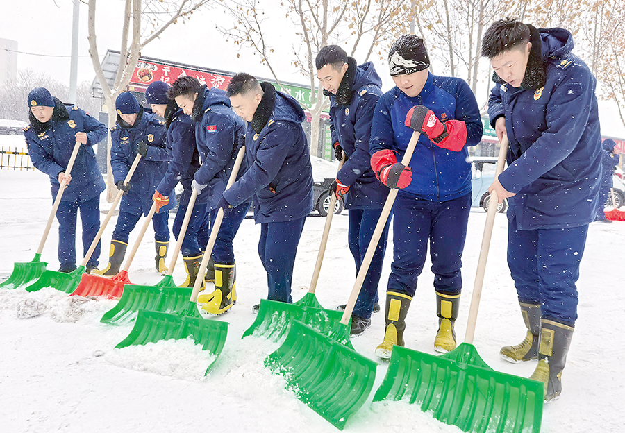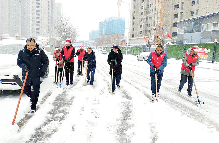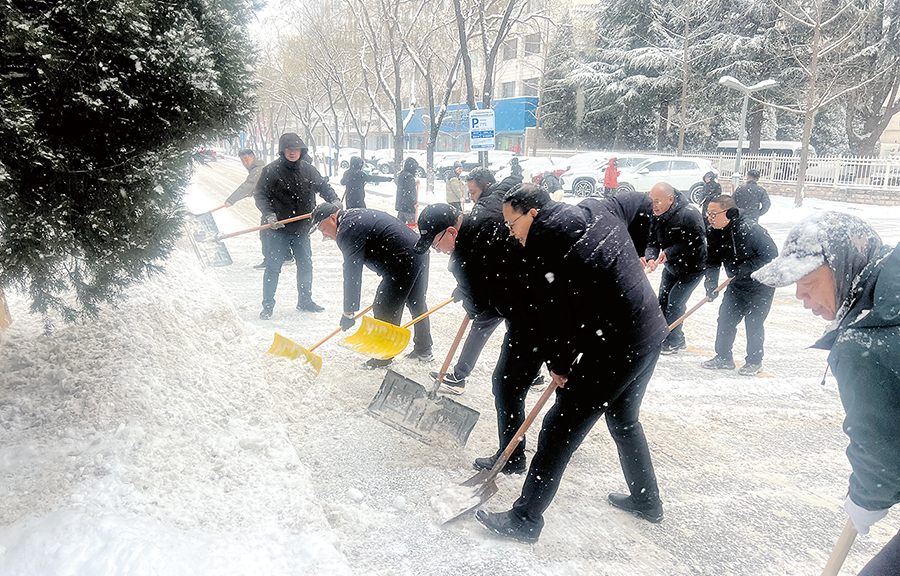 市公路局组织干部职工对“门前三包”及人行道进行除雪。