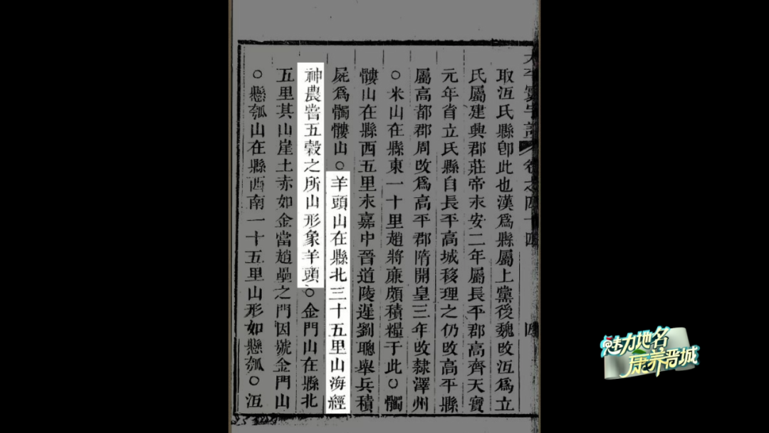 据北宋《太平寰宇记》曰:“羊头山在县北三十五里”……“神农尝五谷之所,上有神农城,下有神农泉。”