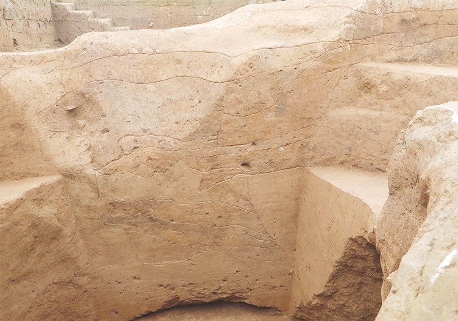FJ3解剖探沟西壁可见建筑基础南部基槽。(资料图片)