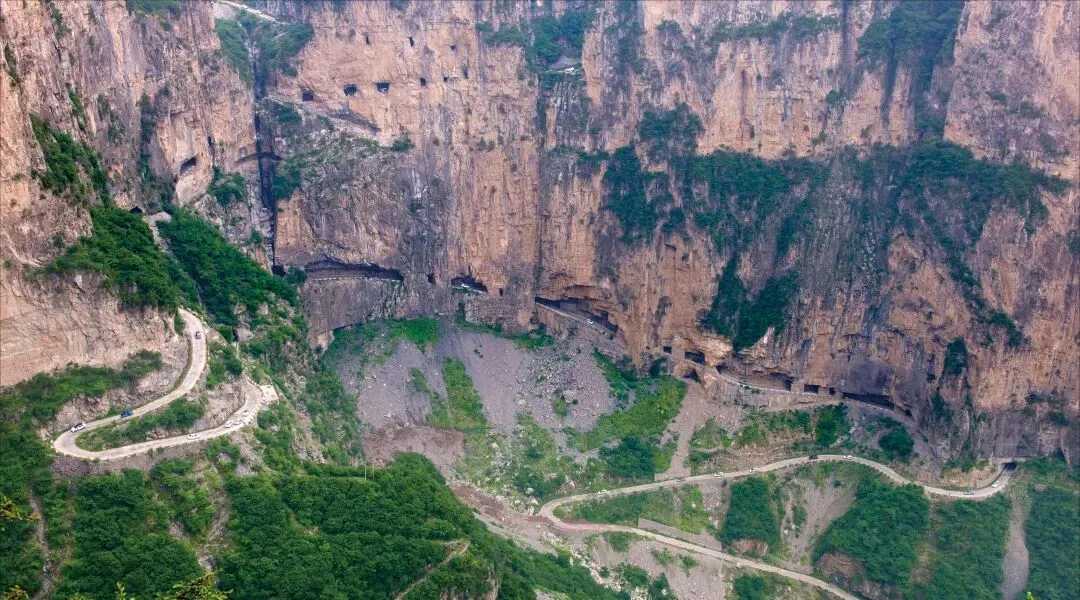 王莽岭的山脚下,坐落着美丽的锡崖沟,峡谷、湖水、石板房,构成了一个世外桃源。来到这里不得不走一遍的就是锡崖沟挂壁公路,一条“之”字形的挂壁公路蜿蜒如巨龙。巍峨陡峭的太行山上,总共有7条挂壁公路,5条是由山西人民开凿的,而其中开通最早、距离最长的,就是这条锡崖沟挂壁公路。