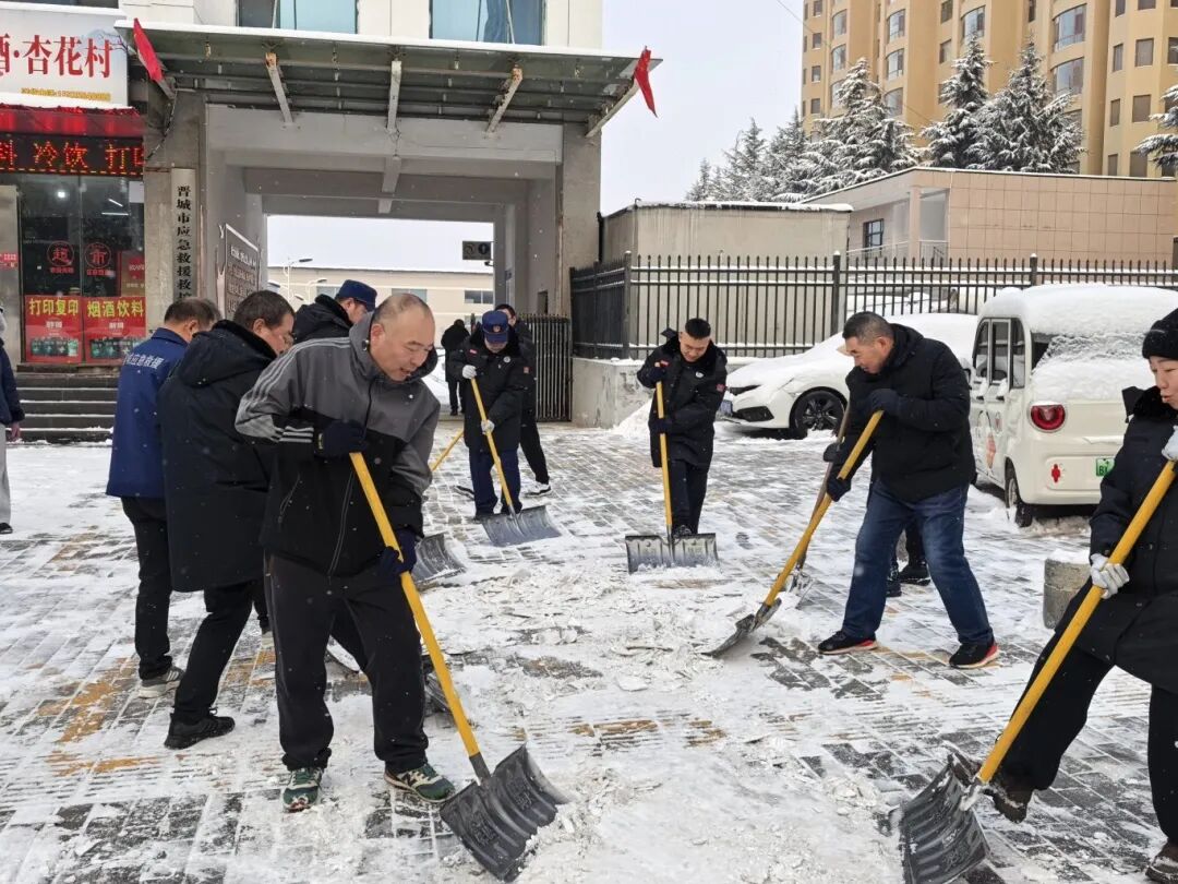 经过大家的奋力清扫,单位门前、包联社区和路段关键区域的积雪和暗冰被彻底清除,有效保障了出行安全与办公秩序。