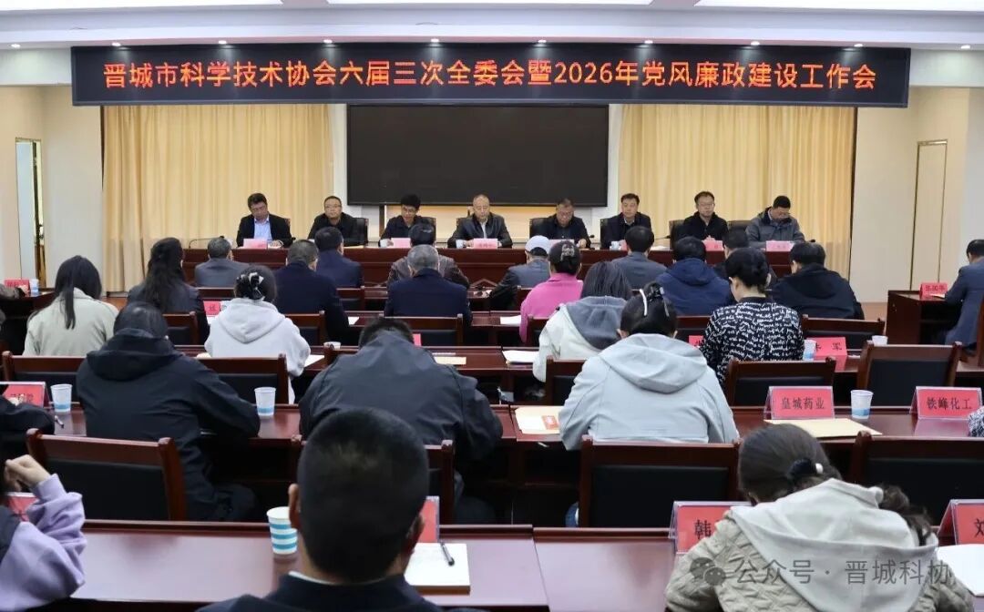 3月31日上午,晋城市科协六届三次全委会暨2026年党风廉政建设工作会议在市科协六楼会议室召开。市科协党组书记、主席连陆军,市纪委监委派驻第八纪检监察组组长原晋毅,市科协党组成员、副主席冯文忠、曹峰毅、段鹏,市科协兼职副主席成磊、郭伟出席会议。