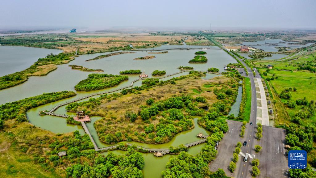 这是2021年5月13日拍摄的山东黄河三角洲国家级自然保护区景色(无人机照片)。新华社记者 郭绪雷 摄