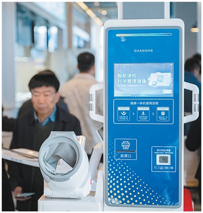雄安新区启动区文华社区华序府智慧食堂内安装的健康一体机。新华社记者 伍志尊摄