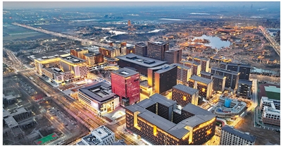 雄安商务服务中心夜景。图为新华社记者牟宇摄
