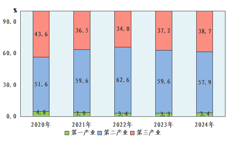 图2:2020—2024年三次产业增加值占全市生产总值比重