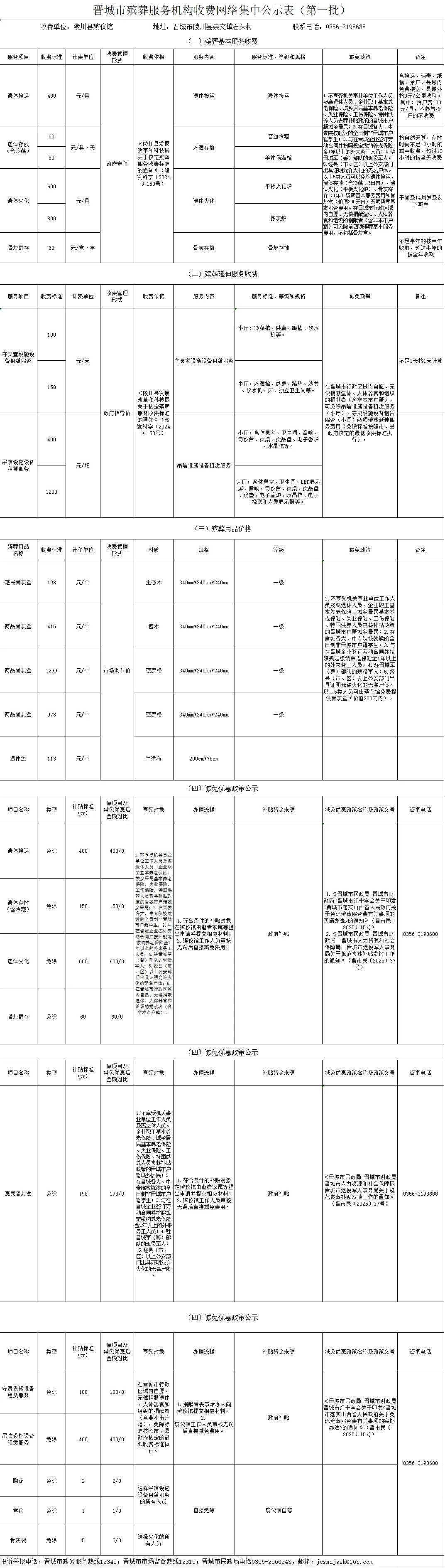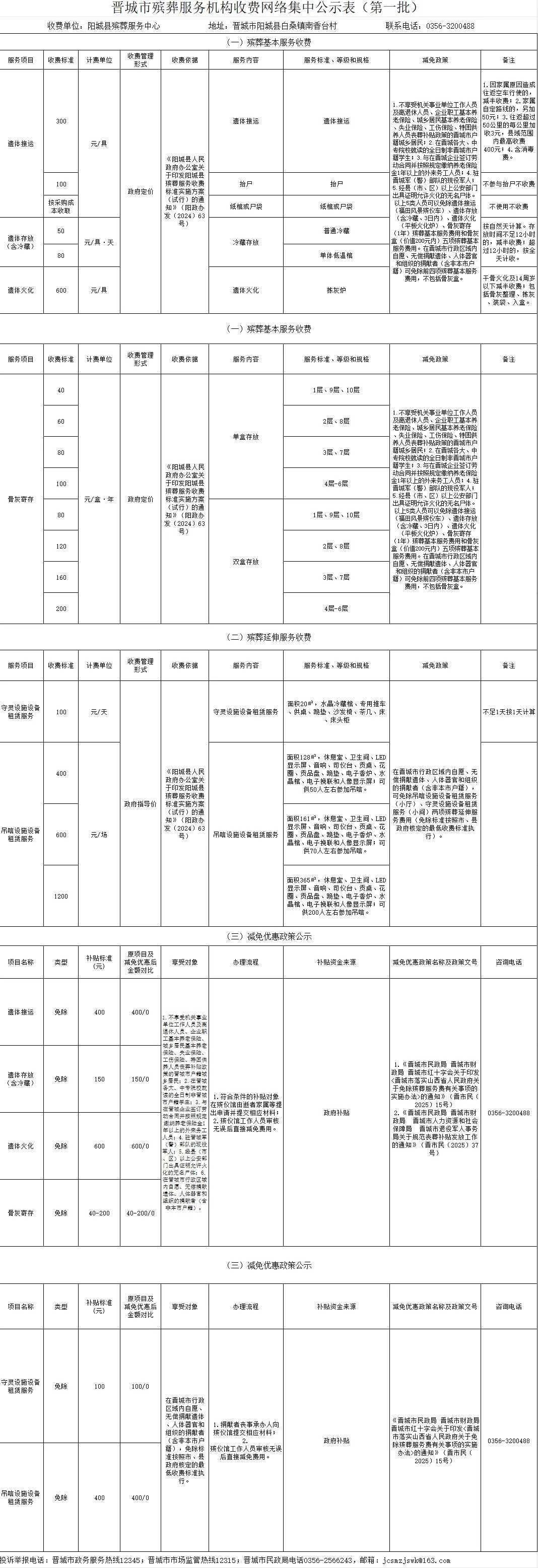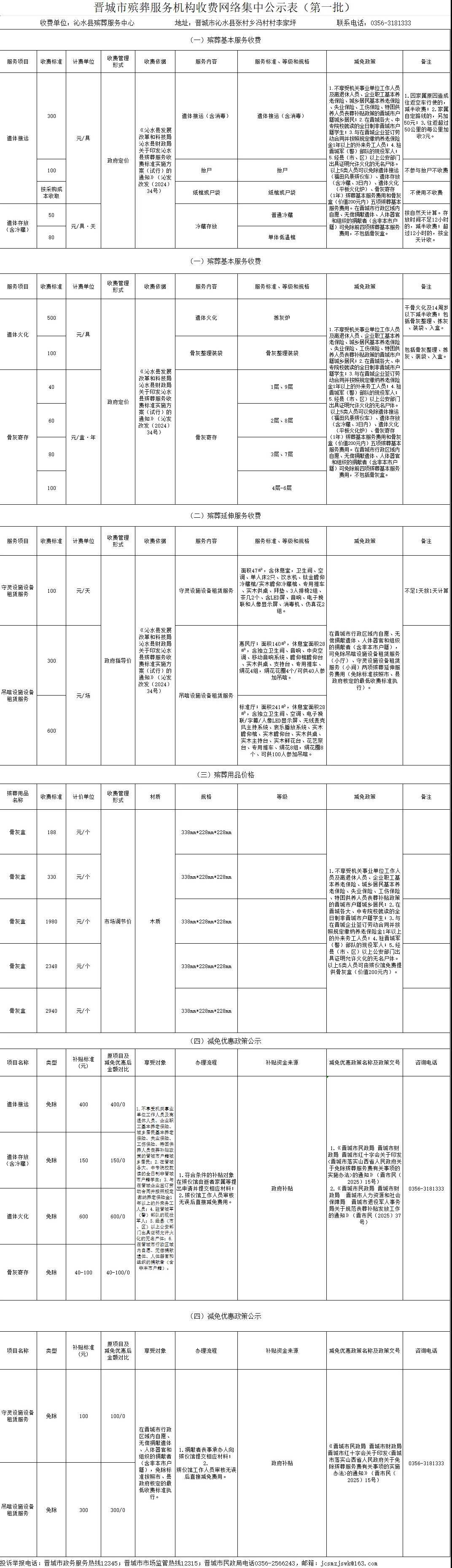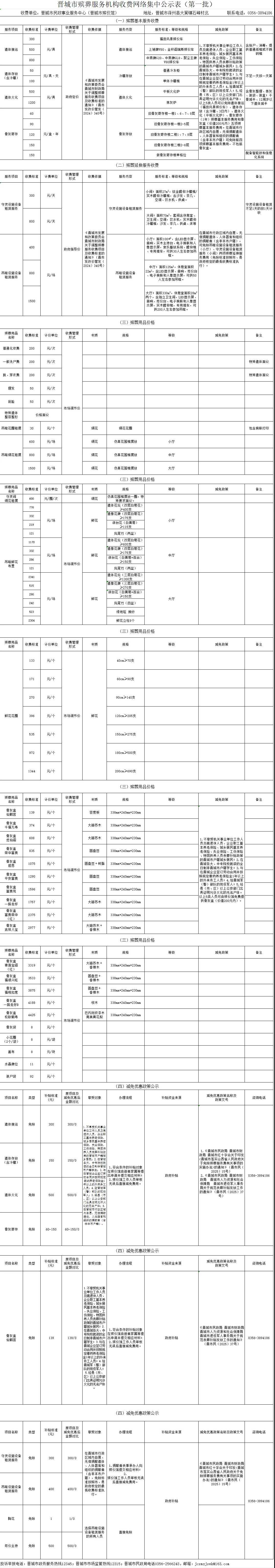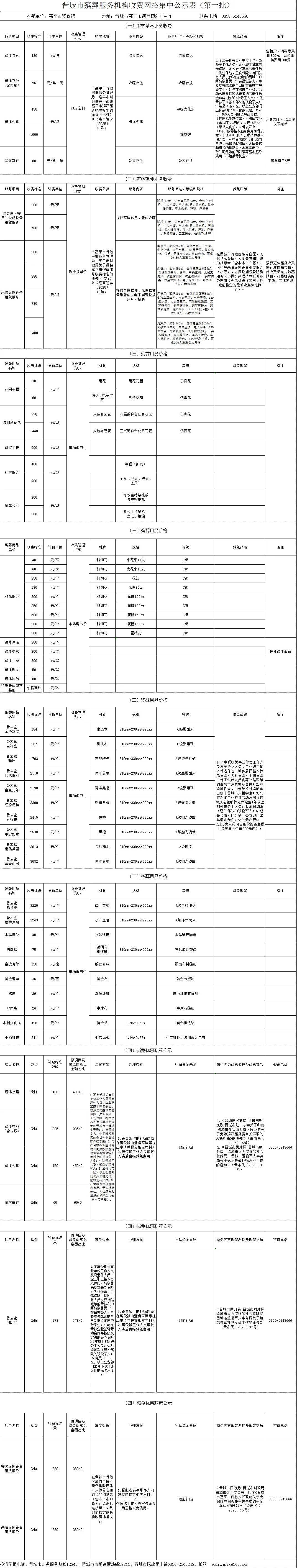 晋城市殡葬服务机构收费网络集中公示(第一批)