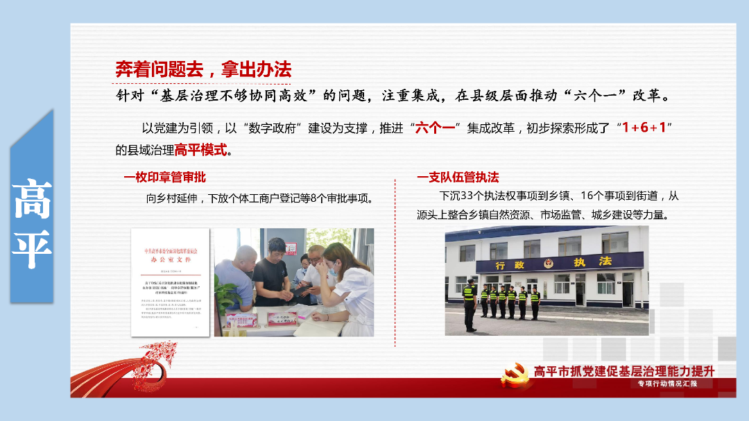 综合运用观摩评、专班评、汇报评、交流评、案例评等多种形式,搭建起基层治理“比武台”“竞技场”,比出了压力、比出了动力、比出了干劲、比出了精气神。