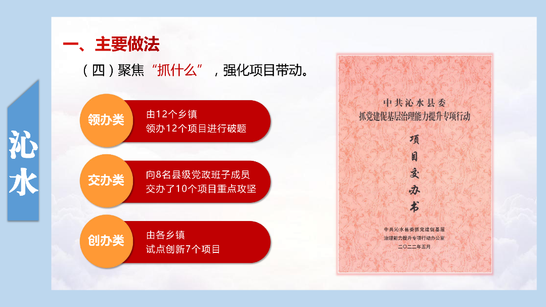 各县(市、区)以“领题破题”行动为抓手,坚持“创品牌、出精品”,深入总结提炼本地开展专项行动以来的创新举措、实践做法、示范标杆、典型经验,形成了一批务实管用的新制度、新机制,探索了一批具有实践意义的新经验、新做法,打造了一批可看可学可感的实训基地。