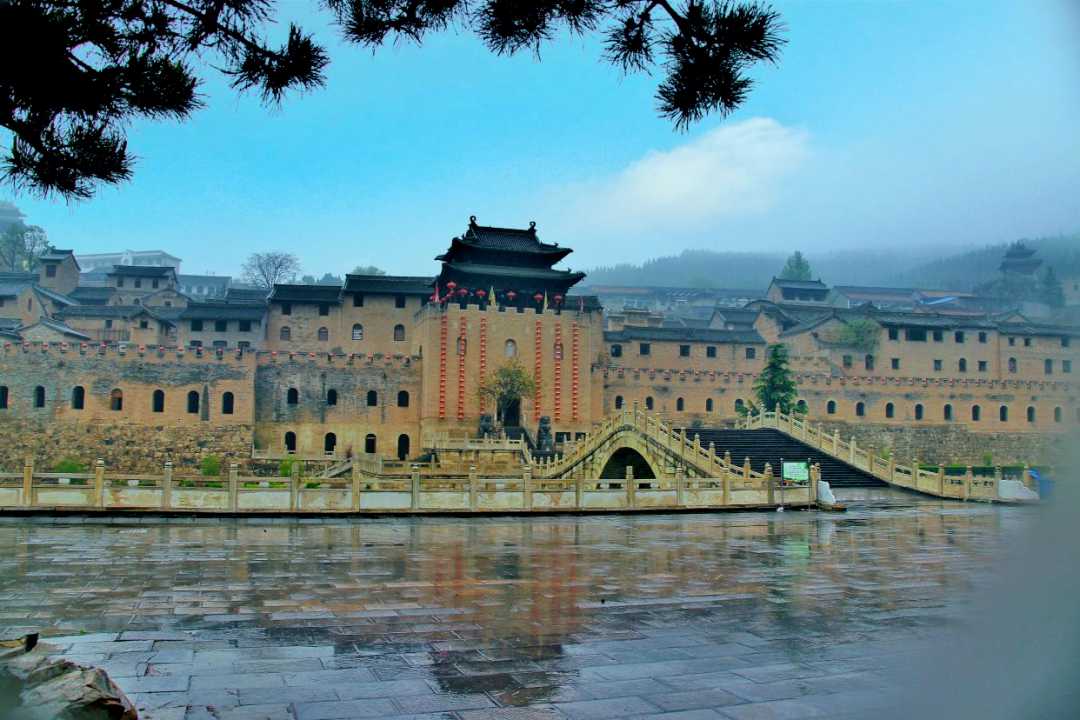 湘峪古堡的“双插花院”,屋顶造型似欧洲教堂,而院前蜿蜒的人工水渠,又宛如江南水乡的护城河,将南方的灵秀巧妙“镶嵌”于北方的苍茫之中。