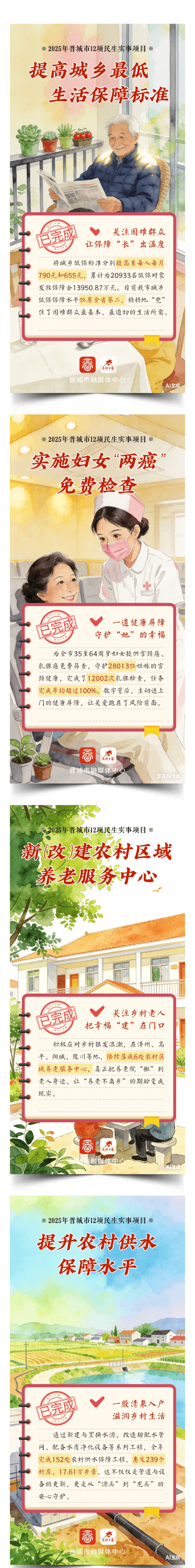 民生无小事,事事关民心。经过一年的努力,备受市民关注的2025年晋城市人民政府12项民生实事项目已全部完成,交出满意“答卷”,圆满兑现了对全市人民的庄严承诺,将群众的“愿望清单”变为“幸福清单”,让美好的生活更加可感可触。