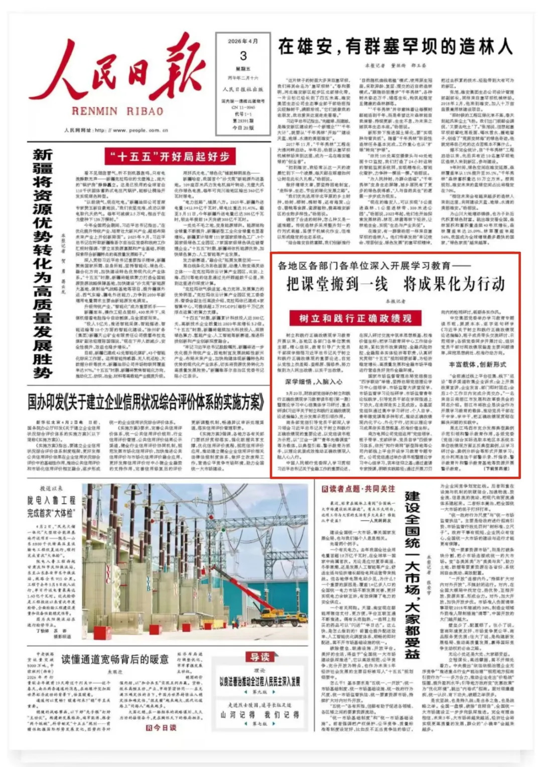 4月3日,人民日报头版《树立和践行正确政绩观》专栏,报道了晋城市扎实开展树立和践行正确政绩观学习教育。