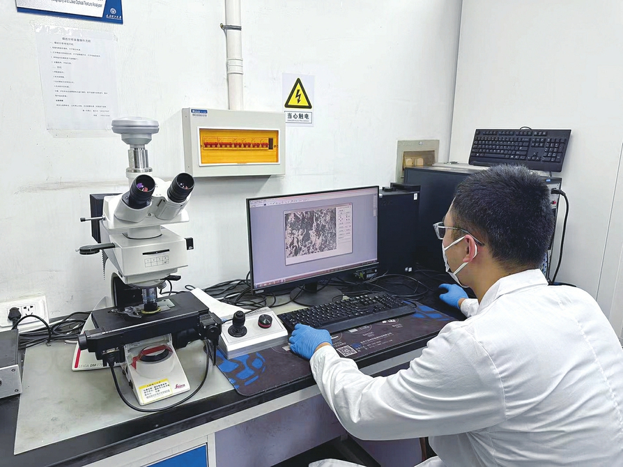 研究人员正在进行煤岩显微组分分析。本栏图片均由孔娇摄
