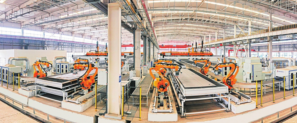 太重智能高端装备产业园区,是国家级智能制造示范工厂,拥有行业下料环节首条“黑灯产线”,仅需4分钟,走过1.1公里产线,一块钢板就能变成合格零部件。本报通讯员摄