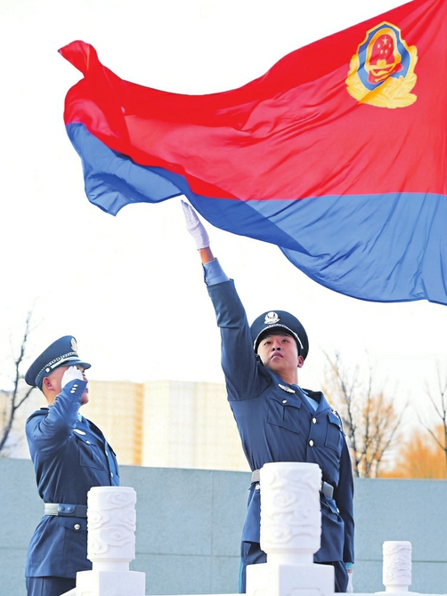 1月10日,第六个中国人民警察节当天,太原市公安局举行升警旗仪式。本报记者赵夏雨摄