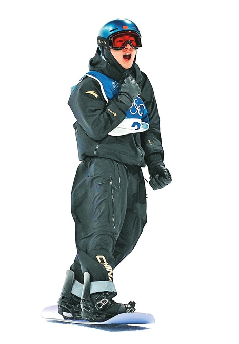 图为苏翊鸣在完成第三跳后庆祝。新华社记者胡超摄