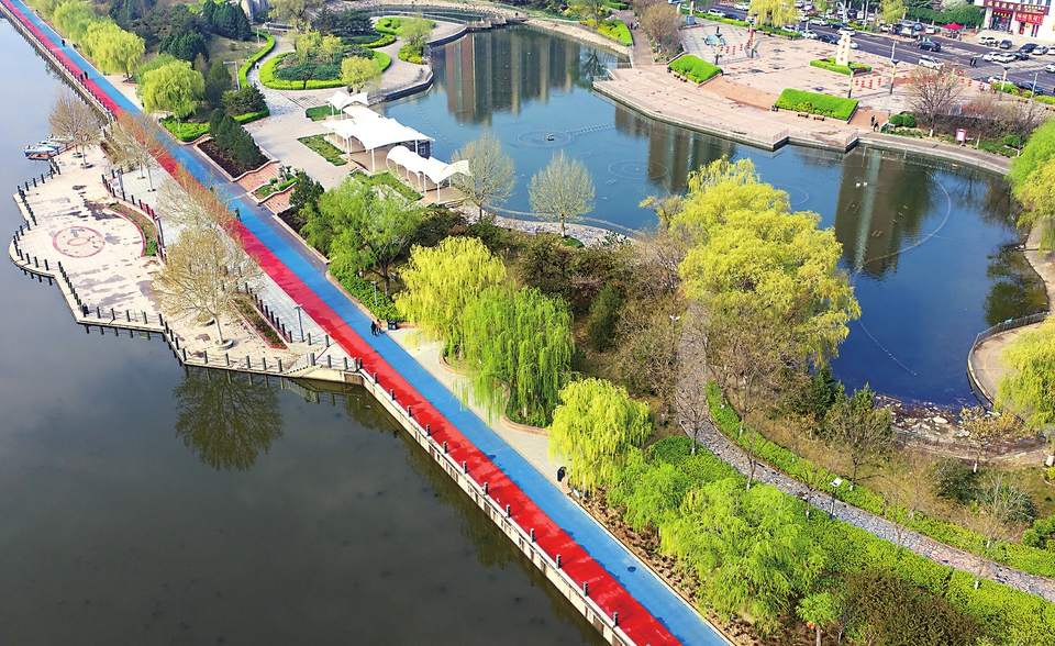 襄汾县滨河公园内花红柳绿,春意盎然,不少市民走出家门赏花踏青,乐享美好春光。李现俊摄