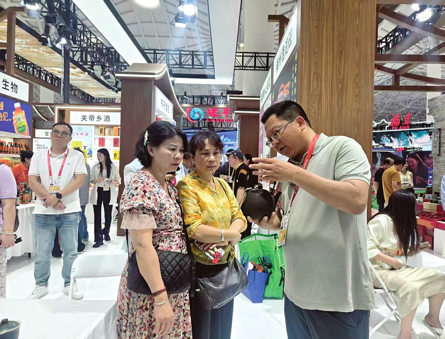 旁边,广东采购商陈先生正与山西福南春山茱萸生物科技有限公司的负责人王文雅交换微信。该公司以“阳城山茱萸”这一国家地理标志农产品为核心,结合非物质文化遗产古法炮制技艺,传递了重阳茱萸文化、孝道文化,增强了品牌内涵。