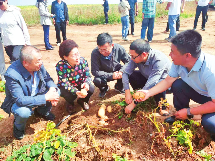 有机旱作农业国家重点研发计划项目组在内蒙古自治区武川县东后水泉村示范基地讨论旱作马铃薯产量与品质问题。