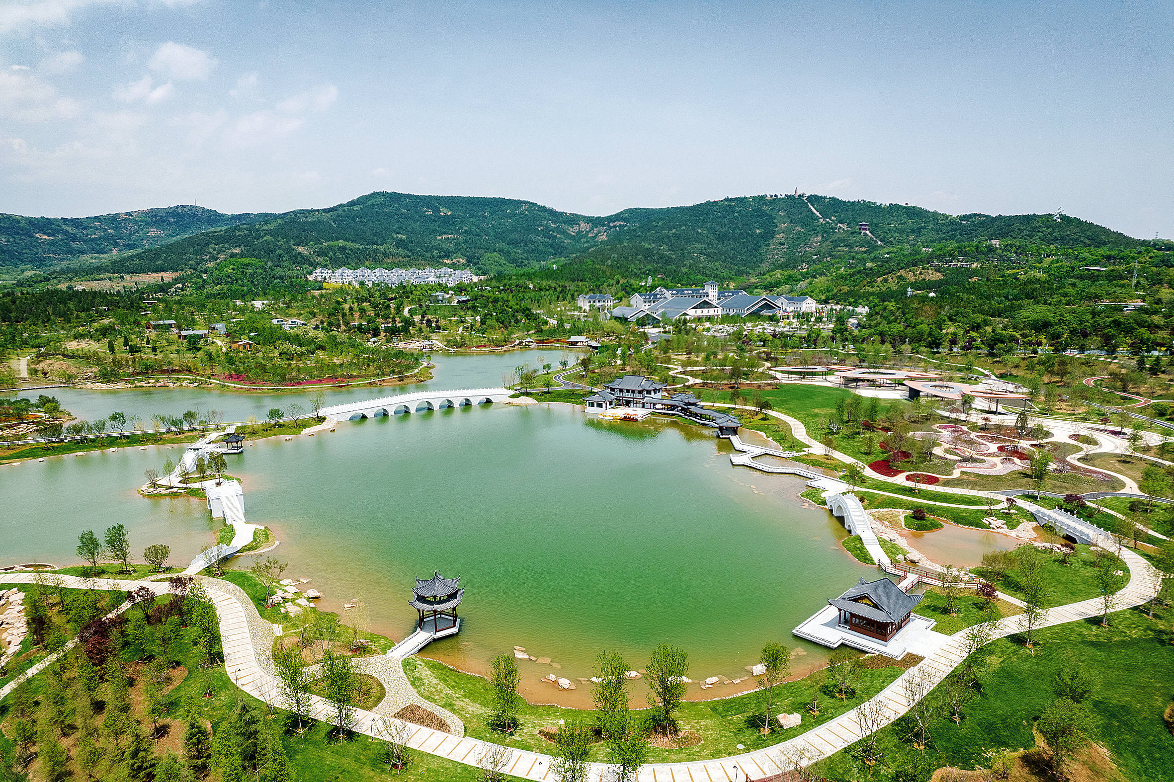 “龙马湖南扩项目总用地面积19.65万平方米,其中水体面积5.36万平方米,水容量达10.7万立方米,绿地面积11.43万平方米。”项目负责人张照鑫介绍,龙马湖建设充分融入水韵之美,以水的灵气彰显着城市的灵气,成为康养产业新龙头、白马寺山山地景观公园点睛之笔。