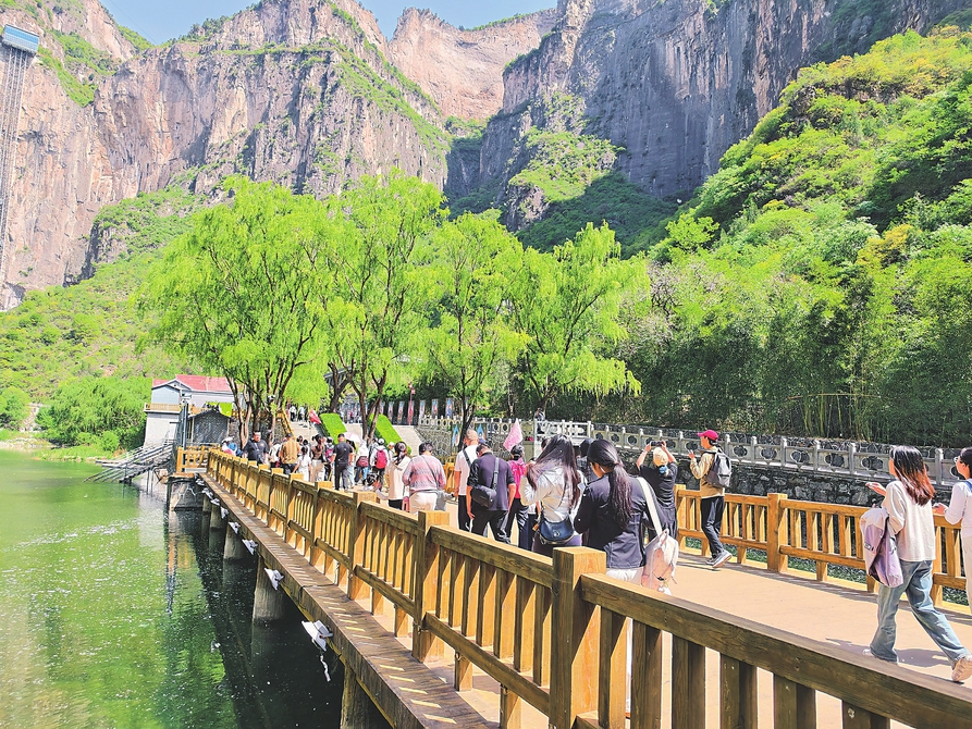 游客步入八泉峡景区,尽览春日太行美景。本报记者栗美霞摄