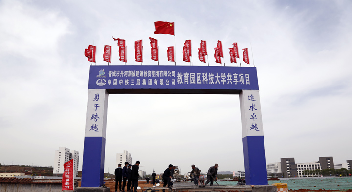 从晋城主城区出发,沿着陵沁路一级道路向东前行,仅10多分钟,便到了丹河教育园区。放眼四望,曾经的荒山、田野、山村上,红旗招展、车辆穿梭,“一切为了创业、一切为了宜居、一切为了孩子”的巨幅版面描绘了丹河新城的美好未来,到处都是一派热火朝天的建设景象。