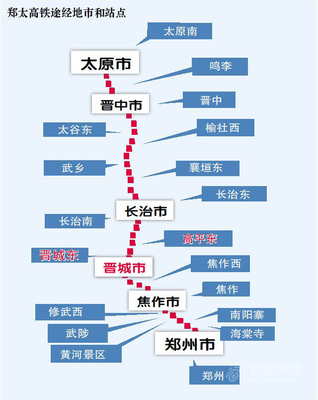 ——太焦高铁山西段设11座车站,晋城东、高平东皆为新建站。