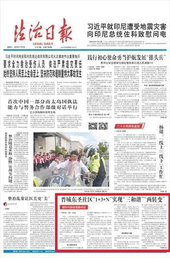 社区党支部引领“居委会+业委会+物业公司”联动,社区网格延伸……晋城东圣社区在社区治理上下了这些功夫。今天的《媒体看政法》专栏,一起来关注法治日报刊稿《晋城东圣社区“1+3+N”实现“三和谐”“两转变”》。