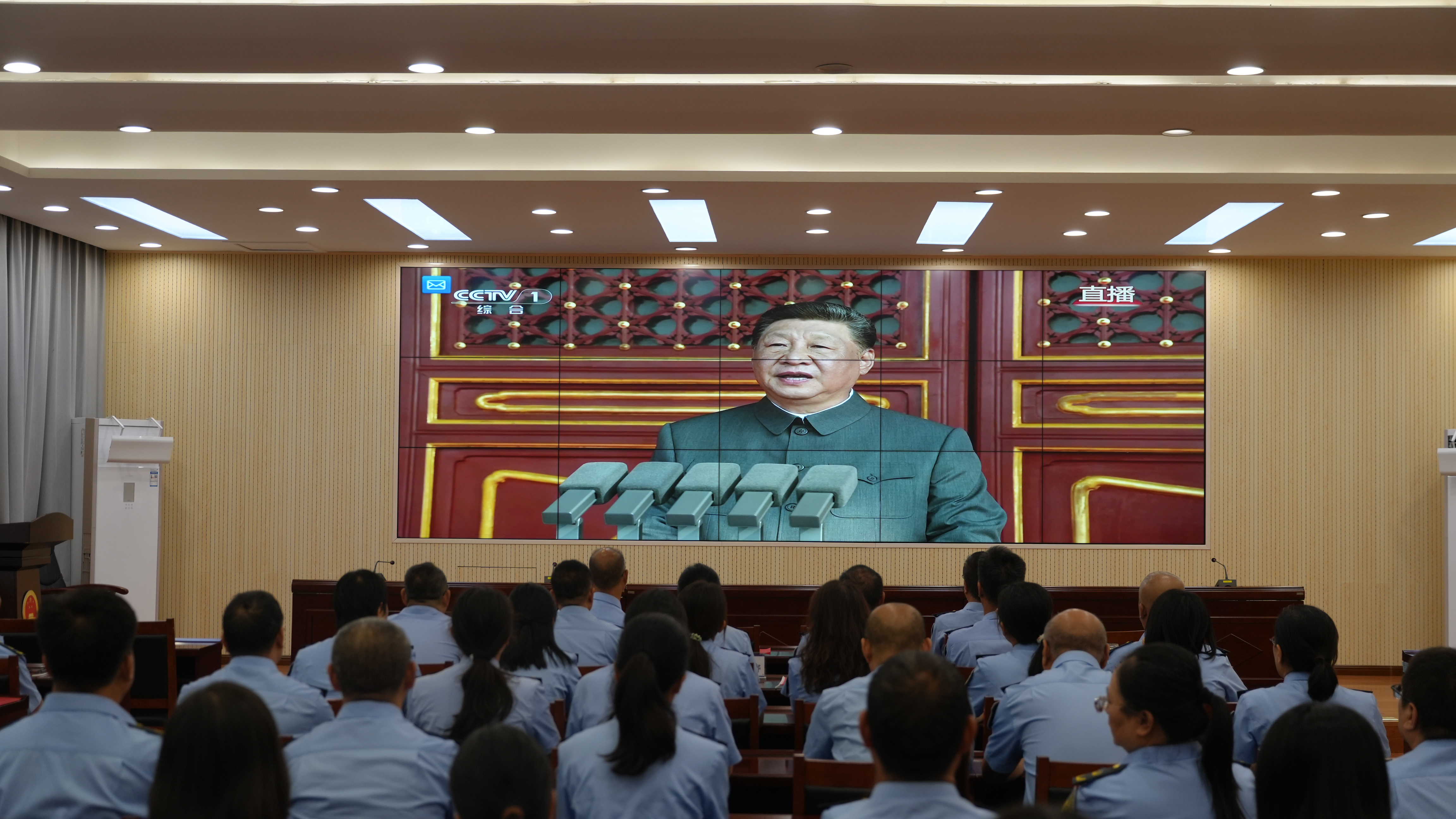 9月3日上午,纪念中国人民抗日战争暨世界反法西斯战争胜利80周年大会在北京天安门广场举行。市市场监管局组织党员干部职工集中收看纪念大会和阅兵现场直播。