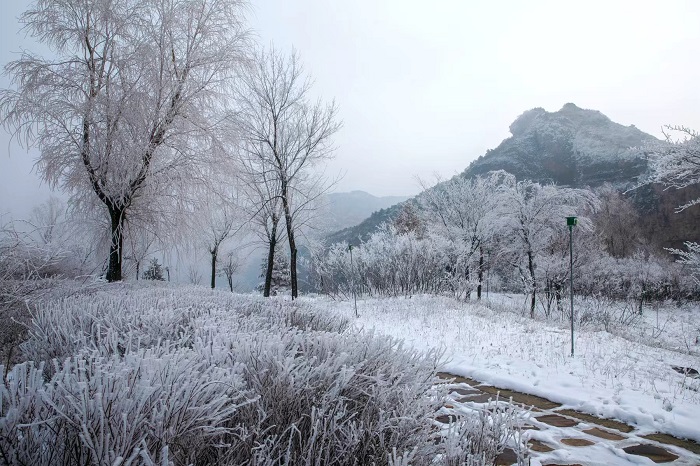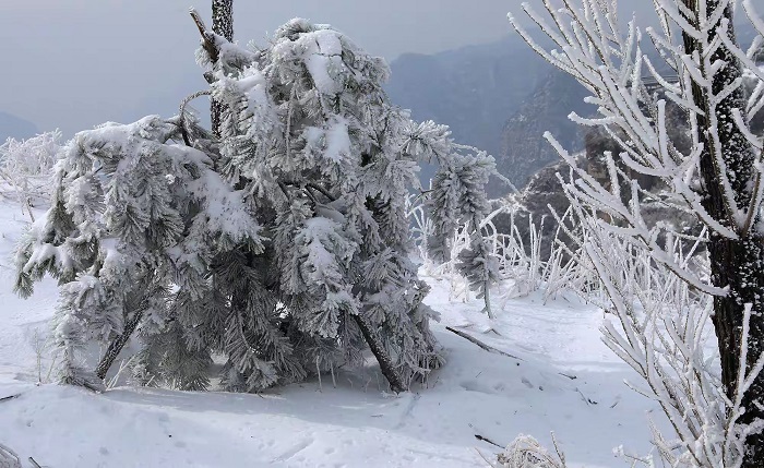 太行山王莽岭:雾凇与云海绘就冰雪画卷