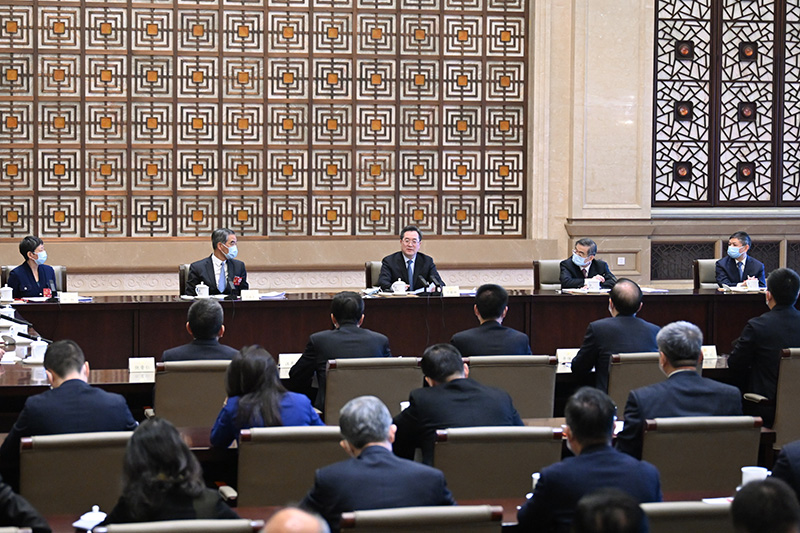 3月6日,中共中央政治局常委李强看望出席全国政协十四届一次会议的经济界委员并参加讨论。新华社记者 翟健岚 摄