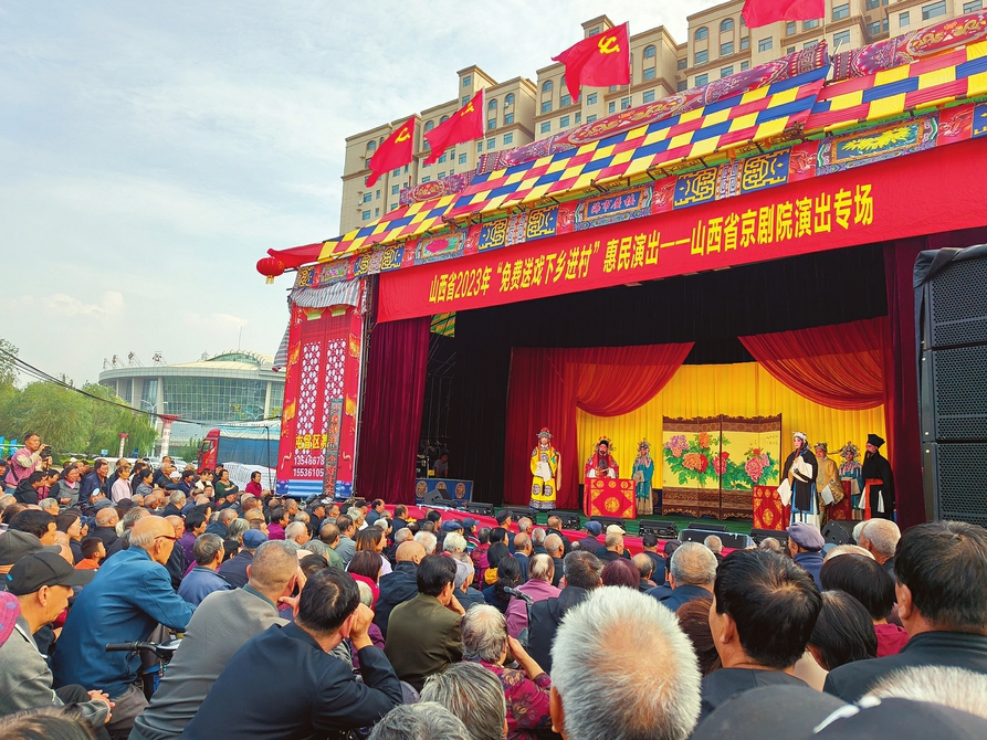 2023年9月27日,山西省京剧院在长治市壶关县龙泉镇东街村开展“免费送戏下乡”进村演出。 申雅静摄