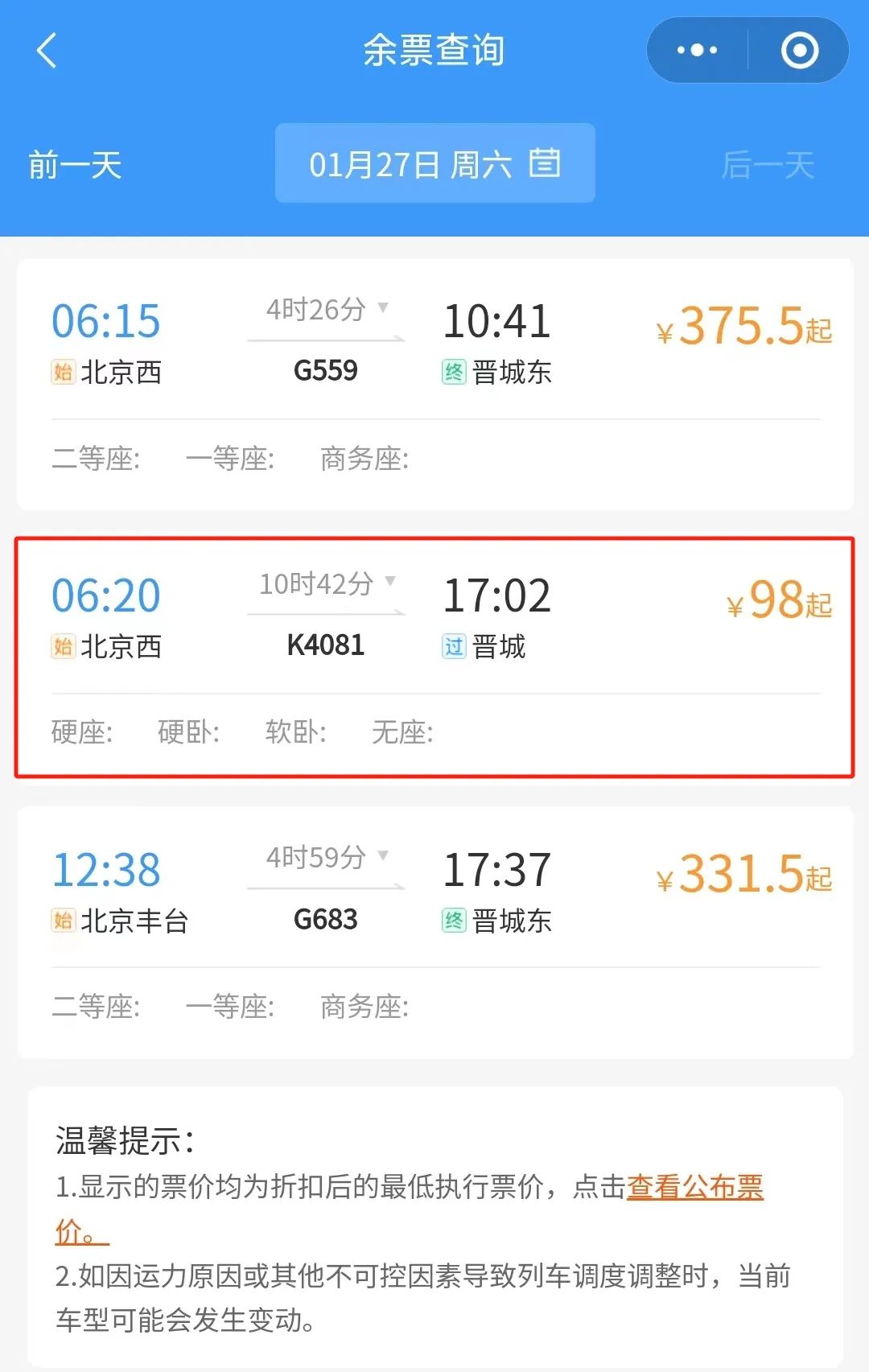 停运许久的长治晋城进京普速列车K1165/4、K1163/6次列车,2024年春运以临客的形式再度开行。车次为长治北——北京西K4083次 ,北京西——长治北K4081次。