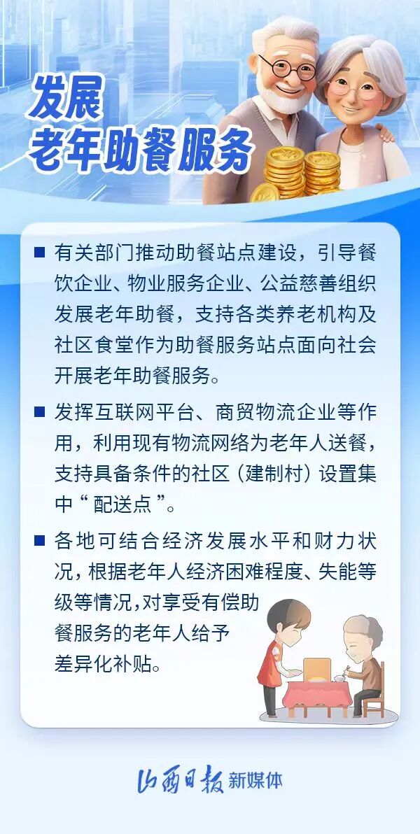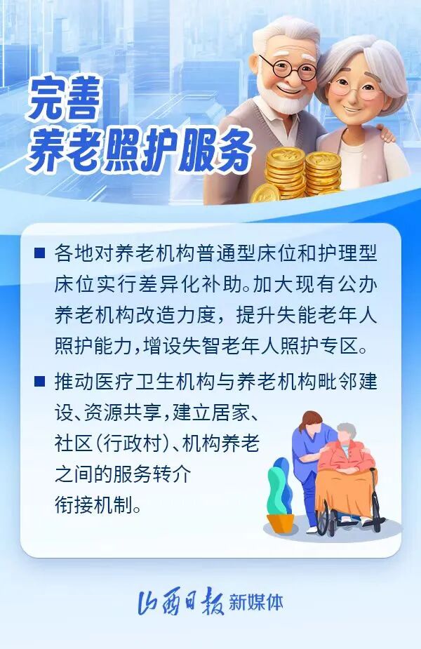 加大现有公办养老机构改造力度,提升失能老年人照护能力;各地可对享受有偿助餐服务的老年人给予差异化补贴……省发展改革委近期制定《山西省发展银发经济增进老年人福祉的实施方案》,进一步扩大普惠性养老服务供给,让老年人共享发展成果、安享幸福晚年。