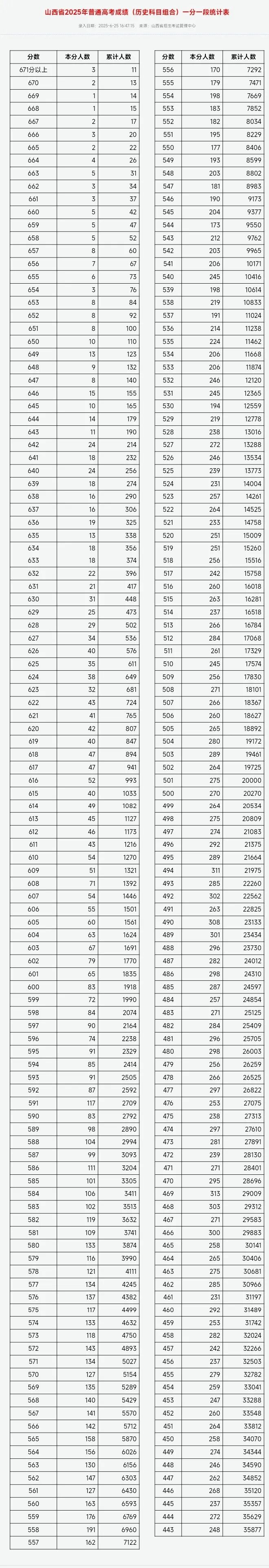 山西省招生考试管理中心公布了,山西省2025年普通高考成绩一分一段统计表,快来看看你属于哪个分数段~