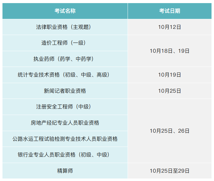 要考证的小伙伴看过来!10月专业技术人员职业资格考试时间表来啦!别错过哦!