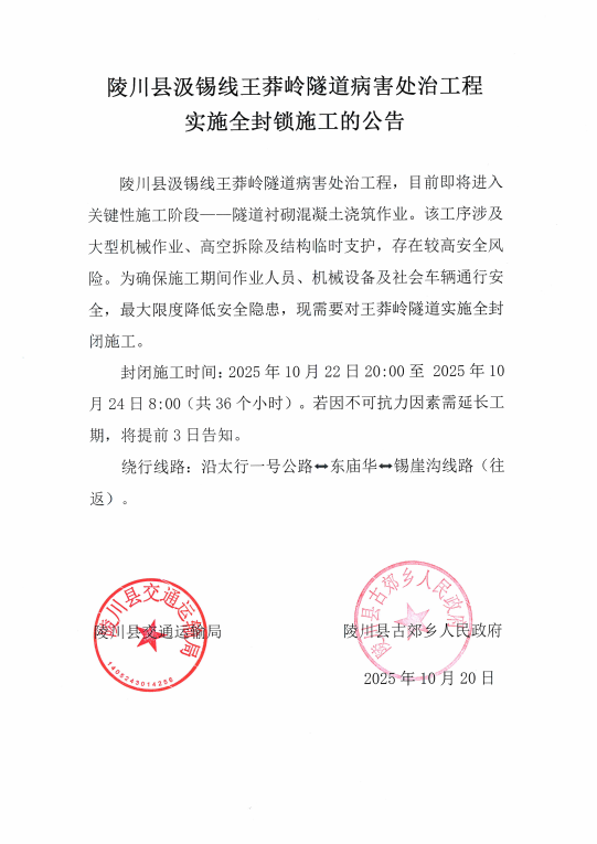 封闭施工时间:2025年10月22日20:00至2025年10月24日8:00(共36个小时)。若因不可抗力因素需延长工期,将提前3日告知。