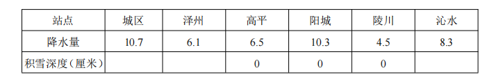 2026年2月23日00-15时,我市大部出现雨夹雪或小雪,南部局地降中等强度雨夹雪,最大降水量为23.8毫米,出现在阳城次滩,无积雪。