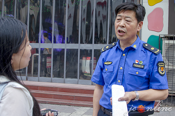 一是全天候保障在岗执勤;二是提醒沿街两侧商户,禁止张贴小广告宣传品,播放分贝比较高的声音,发现这些我们及时进行清理,及时进行规范,确保步行街整洁干净有序。